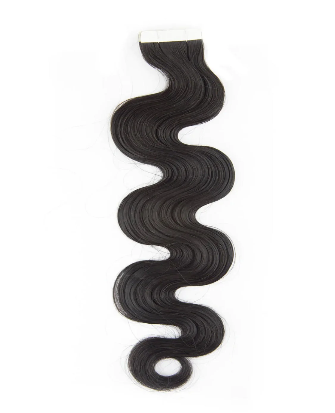 These Bouncy Body Wave Tape-In hair extensions are top-rated and have a lifespan of up to 2 years with proper maintenance. Each installation typically lasts 8-10 weeks and can easily be refreshed with new adhesive tape for reuse. They come in a natural black color, but can be customized with dye or bleach for a light blonde (#613) shade.